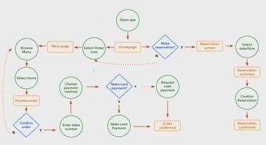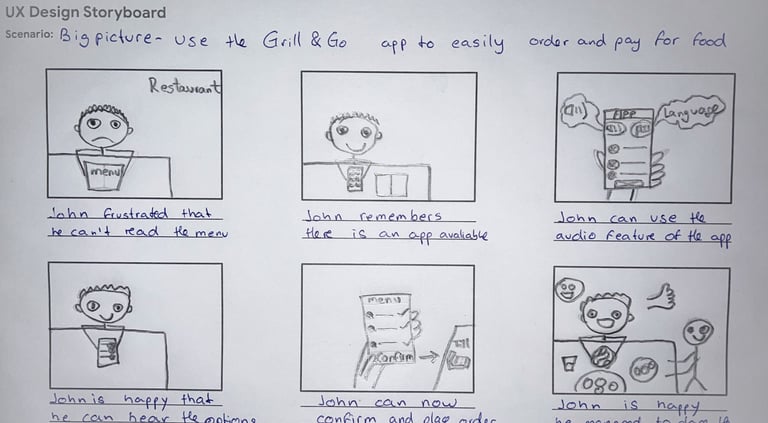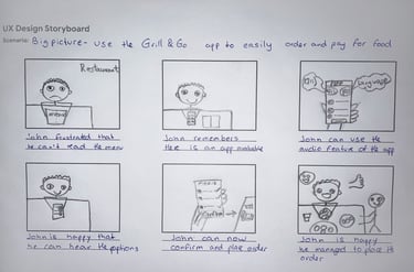 Storyboard - to bring the journey to life and help me visualise how users would interact with the app in a real dining context.