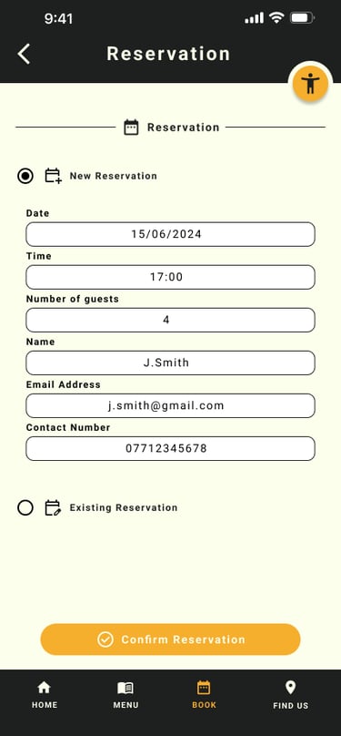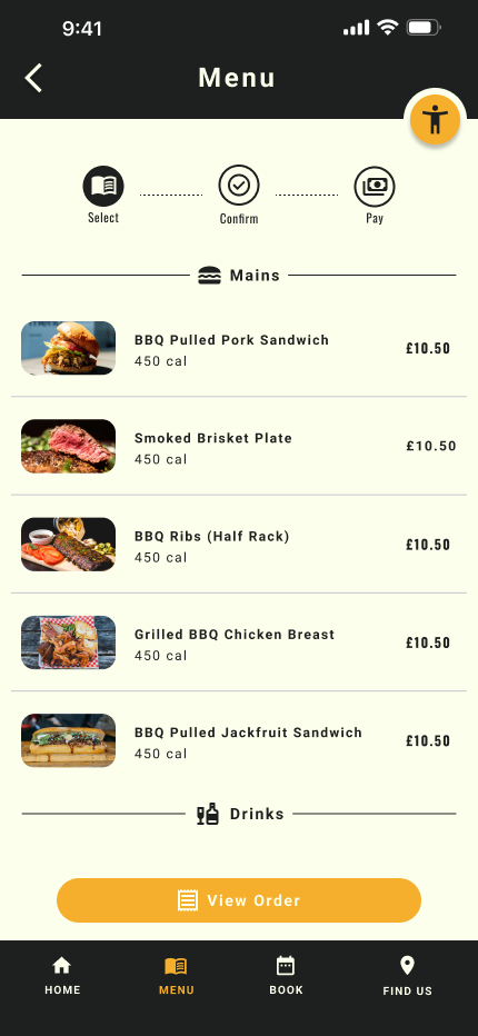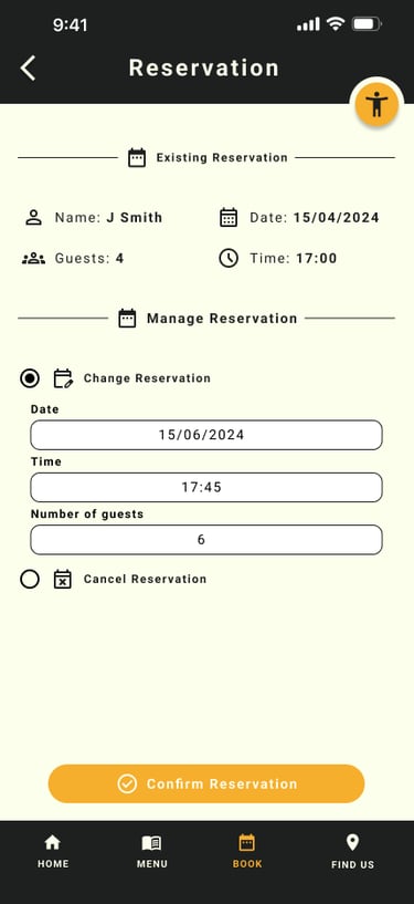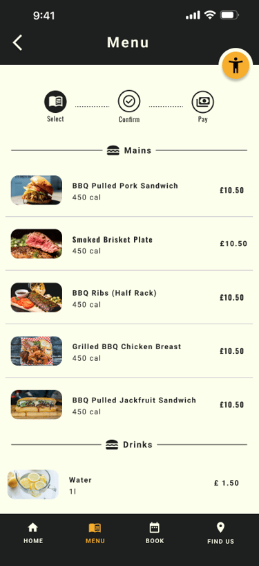 Designed a mobile app for a BBQ restaurant that allows users to reserve a table, place orders, and pay seamlessly from their phone, with a strong focus on accessibility and ease of use.