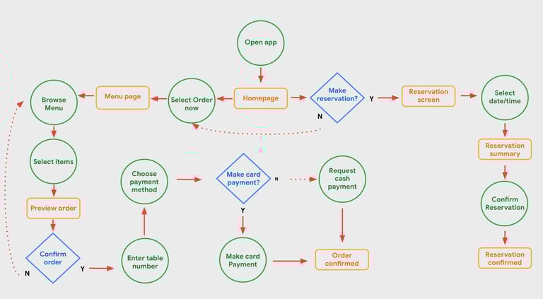 User flow diagram - helped me identify key decision points users will have to make in order to complete their task, so that I can remove potential friction throughout the experience